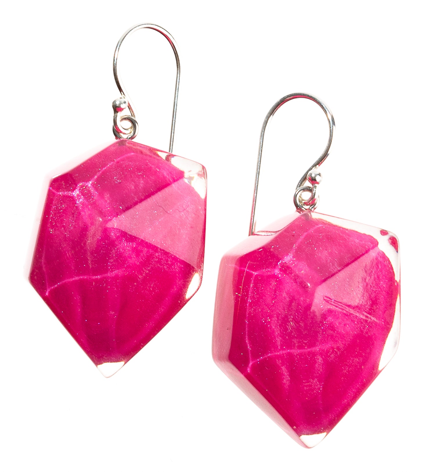 Make a statement with PRUE by ZSISKA's ROCK CANDY earrings, expertly crafted in Thailand from resin with a metallic shimmer. These striking red earrings feature a unique, faceted design reminiscent of tumbled gemstones.