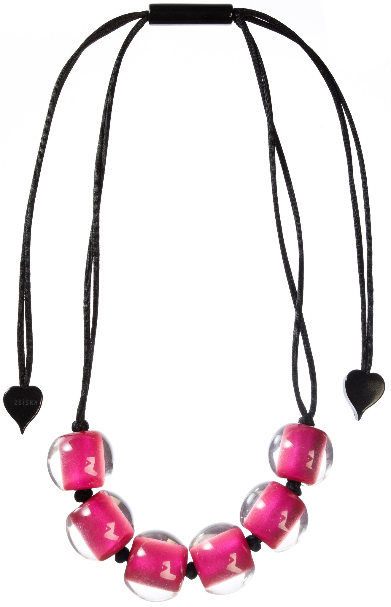 Introducing the COLOURFULBEADS necklace by ZSISKA DESIGN. This elegant piece is available in a variety of striking colours including Anthracite - Royal Blue, Anthracite - Cherry Red, Anthracite - Dark Green, Anthracite - Fuchsia, Royal Blue, Anthracite, Cherry Red, Dark Green, and Fuchsia. The necklace features 6 large beads, each measuring 2.62 cm, and is designed with an adjustable cord closure for a perfect fit. The ZSISKA COLOURFULBEADS collection is a testament to vibrant style and sophisticated craftsmanship.