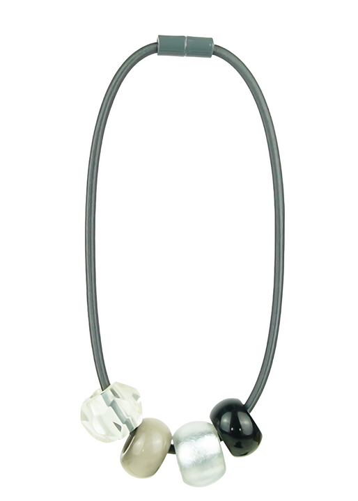 Introducing the "Metallic Mist" necklace from BLISS by ZSISKA, now featuring the exclusive Antracite BLISS Cord. This beautifully crafted necklace boasts a unique blend of beads on a striking new grey cord, designed to add a layer of sophistication to your look with its understated elegance.