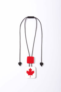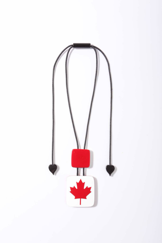 A bold and beautiful celebration of Canada, this round pendant is inspired by ZSISKA’s iconic VERTIGO line. Its graphic red-and-white split design features a proud maple leaf at its centre — unmistakably Canadian, effortlessly chic.
