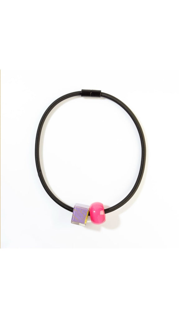 BLISS "create your own necklace" Purple and yellow cube with fushia bead